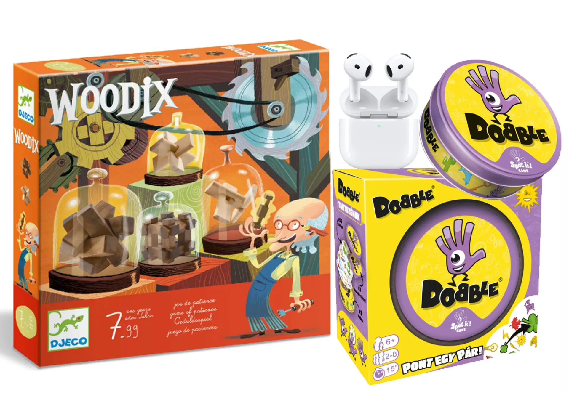 2 db Matek Oázis Ajándékcsomag (benne: Dobble társasjáték + Woodix ördöglakat készlet)