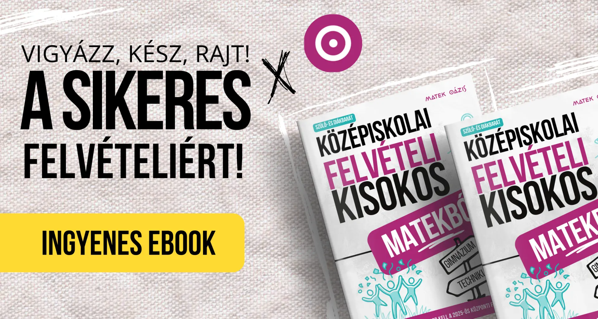 Töltsd le INGYENES Felvételi Kisokosunkat, amelyben részletesen megtalálod, milyen témakörökre kell felkészülnöd.