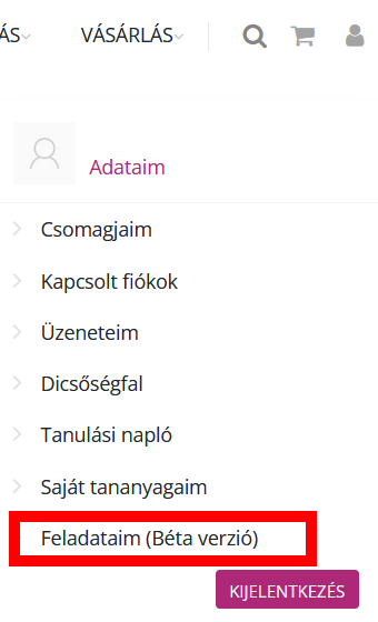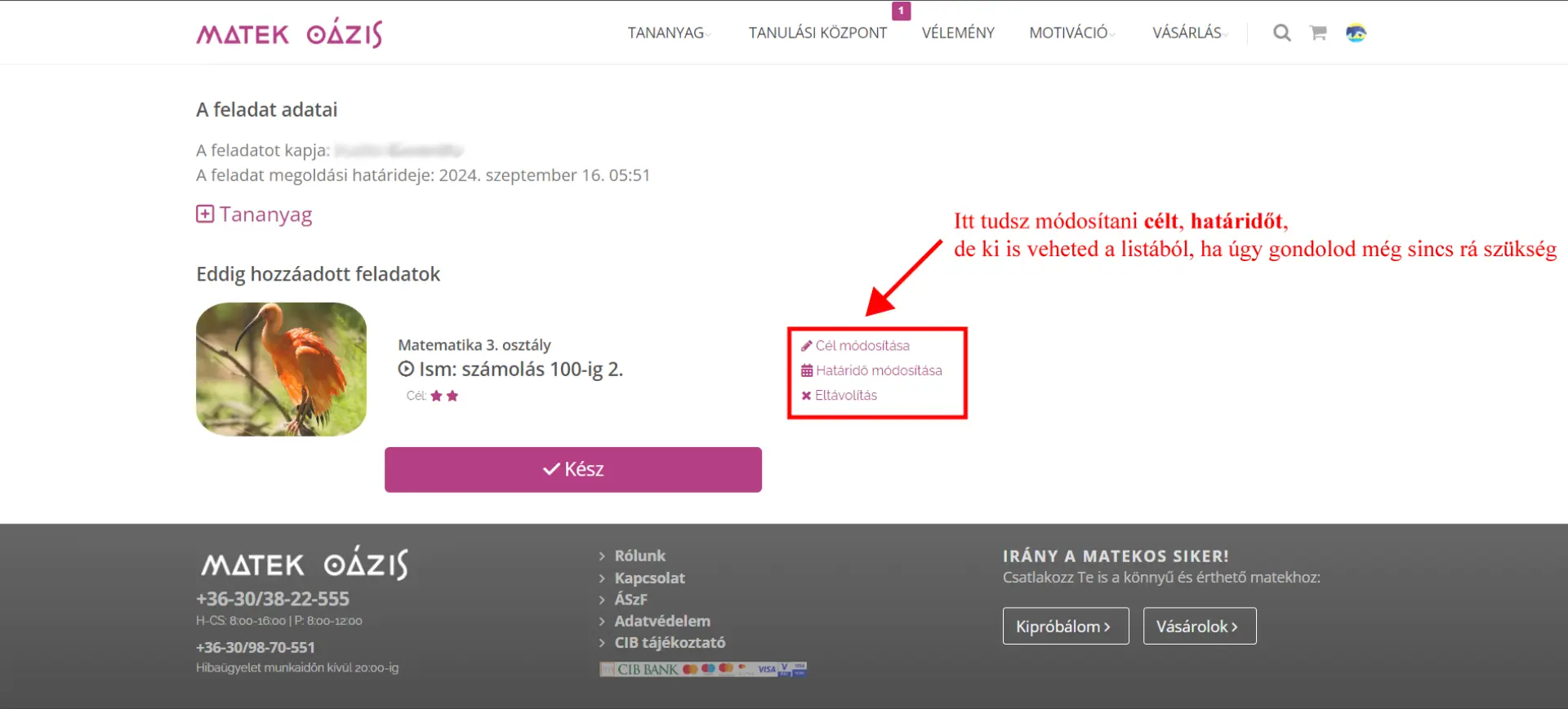 Feladat létrehozása | Feladat kiválasztása | Feladat kiosztása tanagyagokból | Feladat nyomon követése | Feladat módosítása