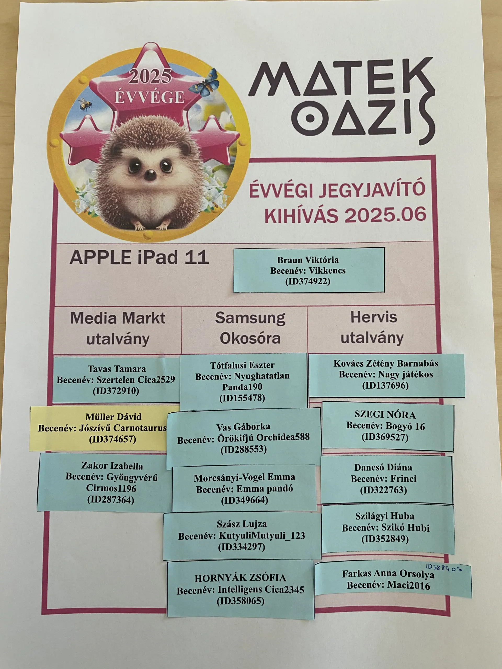 Gratulálunk mindenkinek, aki teljesítette újabb kihívásunkat: az Évvégi Jegyjavító Kihívást! Mindenki nyertes, aki a tavaszi szünet végétől a tanév végéig matekozott velünk, hiszen most már biztosan sokkal magabiztosabban ismeri ki magát a matematika útvesztőiben.