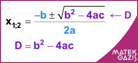 A megoldó képletben 'a' az x2 együtthatója, 'b' az x együtthatója 'c' pedig a konstans tag. A diszkrimináns jelölése: D.