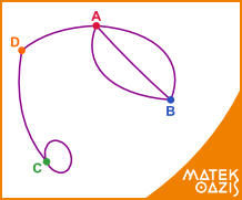 Összehasonlításul nézzük meg a következő ábrát! Ez a gráf nem egyszerű gráf, hiszen az A és B csúcsát 3 él köti össze, ezek többszörös élek. Ráadásul a C csúcsánál hurokél van.