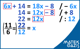 1. Feladat: Megoldjuk a 3x + 14 = x - 6 egyenletet