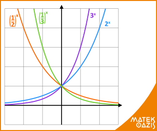 - mivel a0 = 1 minden a > 0 esetén, ezért mindegyik exponenciális függvény a 0-nál az egyet veszi fel, azaz minden exponenciális fgv átmegy a (0;1) ponton.