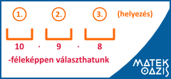 Megoldás: A dobogón három hely van. A 10 emberből 3-at kell kiválasztani, aki dobogóra áll. Azonban nekik számít a sorrendjük, hiszen neked se lenne mindegy, hogy a dobogó melyik fokára állsz.