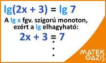 lg (x) = lg (3 · 25) A logaritmusfüggvény szigorú monotonitása miatt lg elhagyható, így: