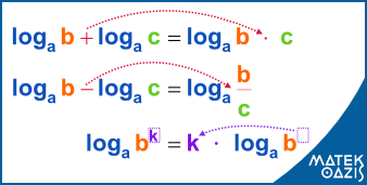 A b szám a alapú logaritmusa az a kitevő, amelyre a-t emelve b-t kapunk, ahol a > 0; a ≠ 1 és b > 0. Jele: loga b.