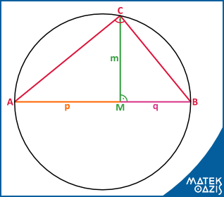 Ha p és q szakaszt egymástól elválasztó M pontra merőlegest állítunk, akkor az metszi ki a Thálesz körből a derékszögű háromszög 3. csúcsát. Az MC távolság, a háromszög átfogóhoz tartozó magassága éppen hosszúságú a magasságtétel miatt.
