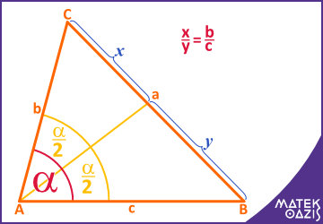 Az ábra jelöléseivel a szögfelező tétel:
