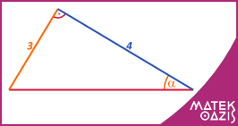 Feladat: Egy derékszögű háromszög két befogója 3 illetve 4 egység hosszú. α legyen a 3 egységnyi befogóval szemközti szög! Számítsuk ki α tangensét!
