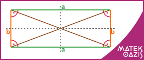 A téglalap szemközti oldalali egyenlő hosszúságúak (két a hosszúságú oldal és két b hosszúságú oldal)