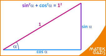 Pitagoraszi azonosság: Adott szög szinuszának és koszinuszának négyzetösszege 1-gyel egyenlő.