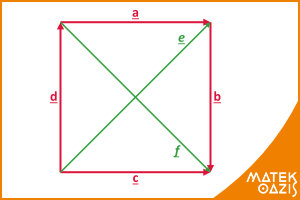 1. feladat: Az ábrán egy négyzet oldalait és átlóit vektorokkal határozzuk meg.