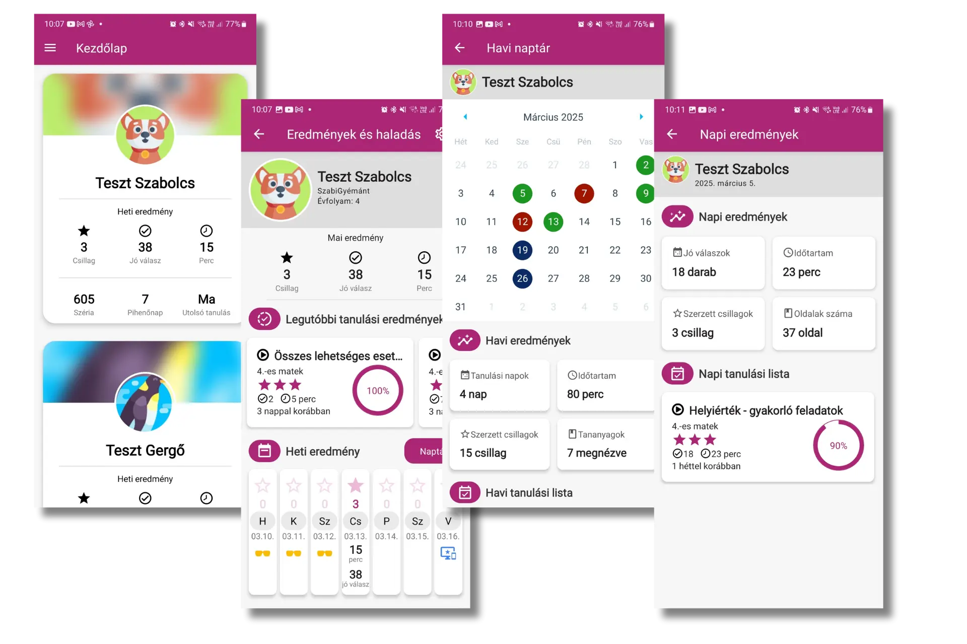 Egy alkalmazás szülőknek és diákoknak – valódi sikerélményekkel és átlátható haladással.