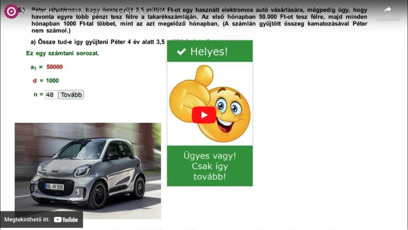 Ha így, együtt-gondolkodva tanulsz, utána önállóan meg fogod tudni oldani a feladatokat, olyanokat is, amikről még nem is hallottál. (És amikről most még nem is álmodnál, hogy ilyent is tudsz. :) Önálló gondolkodásra tanítanak ezek a videók, mert sokkal aktívabban használod közben az agyadat, mintha csak kész megoldásokat tanulmányoznál.