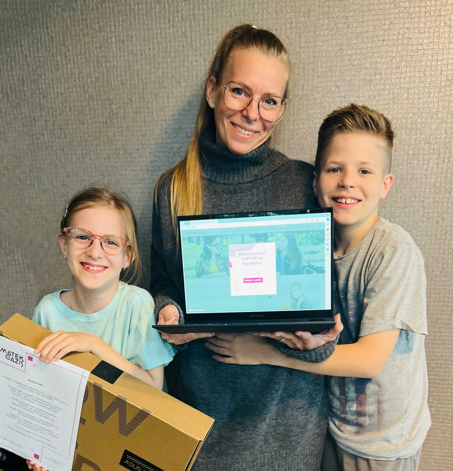 "A gyerekeknek fizettem elő a Matekoázisra, de úgy hozta az élet, hogy a 16 évvel ezelőtti érettségi vizsgám után ismét matekot kell tanulnom, most emelt szinten. Kizárólag az oldalon keresztül készülök, hatalmas segítség, hogy én oszthatom be az időmet, ha valamit nem értenék elsőre, vissza tudok menni korábbi évek anyagához. Egy videót annyiszor nézek meg, ahányszor csak szeretnék, megállíthatom, ha jegyzetelni akarok. Hatalmas segítség a tanulásban! Az, hogy én lettem a szerencsés, aki matekozással laptopot nyerhetett, varázslatos, fantasztikus érzés!!! Soha nem nyertem semmit, de ez a csoda a legjobbkor jött! Teljes gőzzel készülünk tovább a gyerekekkel a Matekoázison, most már ezzel a szuper laptoppal! Nagyon hálásak vagyunk! "