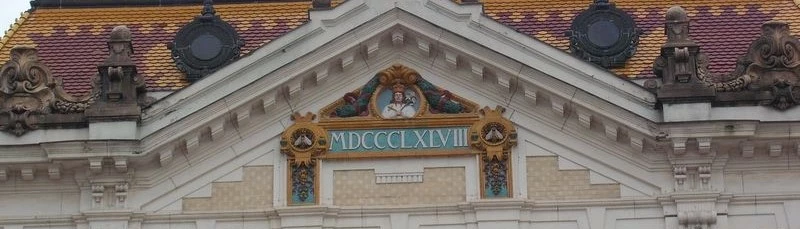 Évszám római számokkal (pécsi megyeháza). A dátum felírása hibás! Ahogy korábban írtuk nem szerepelhet egy római számon belül kétszer az L betű. Az építés éve 1898, helyesen leírva MDCCCXCVIII.