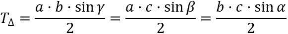 Középiskolában megtanultuk, hogy háromszögek területét úgy is ki tudjuk számolni, ha ismerjük két oldalának hosszát és a két oldal által közrezárt szög szinuszát. Ekkor a képlet: