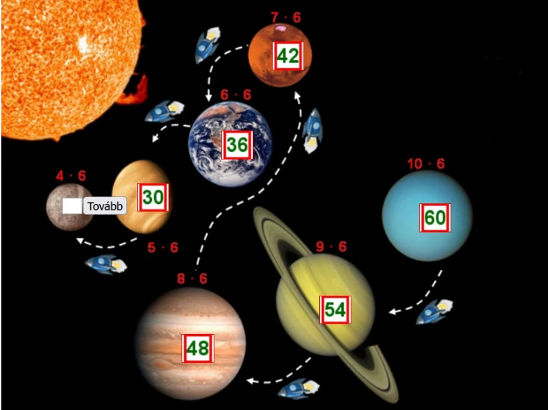 Mint pl. ezzel a játékkal (csak a 6-os szorzótábla videó megtanulása után ajánljuk):