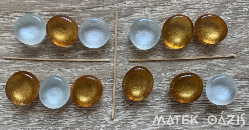 Így 4 kupac kavicsom lesz, mindegyikben 3-3 kavics