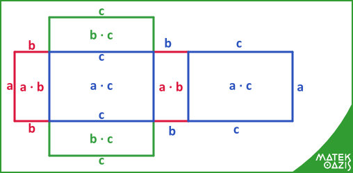 A képletből azt tulajdonságot fedezhetjük fel, hogy 3 féle téglalap alkothatja a téglatestet, mindháromból pontosan két-két darab van.