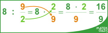 Nem csak törtet tudunk így elosztani egy másik törttel, hanem ugyanígy járunk el, ha egész számot akarunk törttel osztani. Pl. 8-at osszuk el 9/2-del! Az osztást úgy végezzük el, hogy a tört reciprokával szorzunk: 8-szor 2/9. A szorzást már biztos tudod, hogy úgy kell elvégezni, hogy az egész számot megszorozzuk a számlálóval. Így 16/9 lesz a végeredmény: