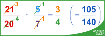 Tehát, ha például a 3/4-et akarjuk elosztani 5/7-del, akkor az első számot leírjuk ugyanúgy, az osztásjel helyett szorzásjelet írunk, az osztó helyett pedig a reciprokát vesszük, így lesz 3/4 szorozva 7/5-del. A szorzást már el tudjuk végezni (ld. A törtek szorzása törttel bejegyzést), a számlálót a számlálóval, a nevezőt a nevezővel, vagyis a felső számokat egymással és az alsó számokat egymással összeszorozzuk, így kapjuk a 21/20-ot.