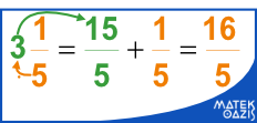 Ha a műveletekben vegyes tört is szerepel, akkor először a vegyes törtet át kell alakítani törtté, és utána már a szokásos módon folytathatjuk.