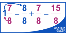 Vegyünk egy példát: egy egész hét nyolcad esetén az egy egész nyilván nyolc nyolcaddal egyenlő, ehhez jön még 7 nyolcad, ami összesen 15 nyolcad: