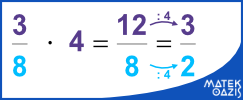 Törtet egész számmal úgy szorzunk, hogy a számlálót megszorozzuk az egész számmal, a nevezőt pedig változatlanul leírjuk.