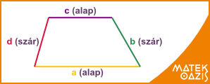 Megjegyzés: azért nem a, b, c, d-vel jelöltük az oldalakat, mert a trapéznál hagyományosan az alapokat jelöljük a-val és c-vel, és ebben az esetben nem lehetünk biztosak benne, hogy melyek is az alapok.