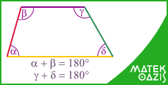 Behelyettesítve az adatokat: 65° + δ = 180° és 50° + γ = 180° Innen megkapjuk, hogy a trapéz két hiányzó szöge: δ=115° és γ=130°.