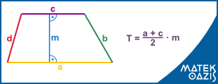 A trapéz terület-képlete a következő: T = (a + c) / 2 · m