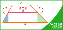 A képletben szereplő tört az alapok átlaga. Ezt a képletet a trapéz átdarabolásával is megkaphatjuk: