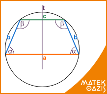 - kör írható köré (Vagyis van olyan kör, amelyre a húrtrapéznak mind a négy csúcsa illeszkedik, ezt hívjuk köré írható körnek). Így a trapéz oldalai a kör húrjai lesznek - innen a húrtrapéz elnevezés.